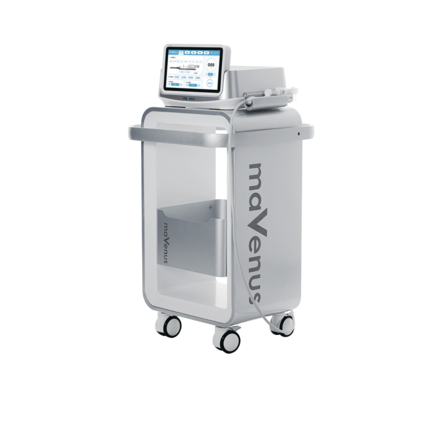 : 由主機(jī)、手柄、腳踏開關(guān)和電源線組成。主機(jī)由顯示屏、電源、真空泵、控制系統(tǒng)、傳感監(jiān)測(cè)系統(tǒng)和報(bào)警系統(tǒng)組成。手柄內(nèi)包含電機(jī)和傳感器。軟件名稱:SW-MESO-01,版本號(hào):Ver2。